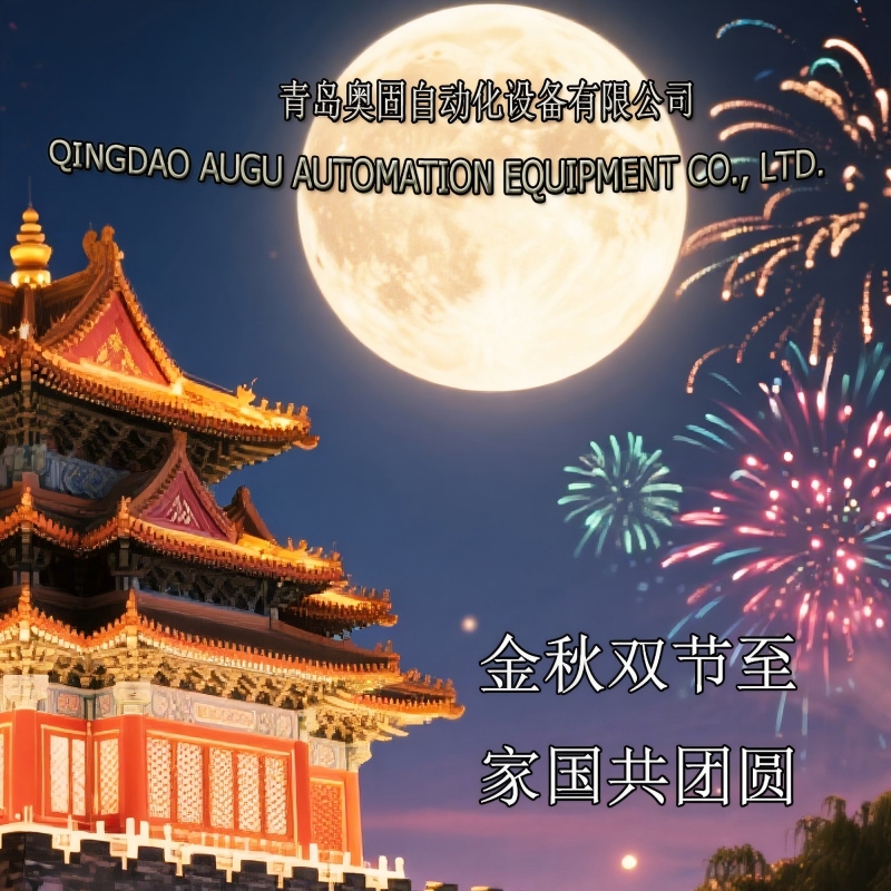 Pe măsură ce sosește toamna de aur cu două festivaluri, națiunea sărbătorește și familiile se reunesc. Toți angajații Qingdao Augu Automation Equipment Co., Ltd. își transmit cele mai sincere urări clienților, partenerilor și prietenilor din toate categoriile sociale care ne-au susținut întotdeauna: Ziua Națională Fericită și Festivalul de Mijloc de Toamnă fericit!
